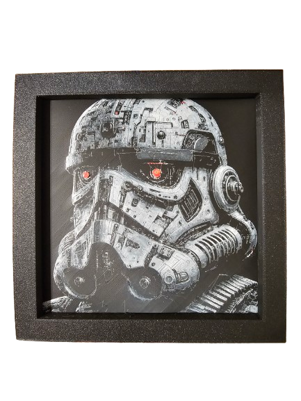 Bring the fierce energy of a battle-scarred futuristic soldier with glowing red eyes into your space with this striking wall art. Perfect for fans of sci-fi and cosplay, it adds a bold, touch to any room, turning your walls into a battlefield of imagination and style. Let your decor tell a story of courage and adventure!